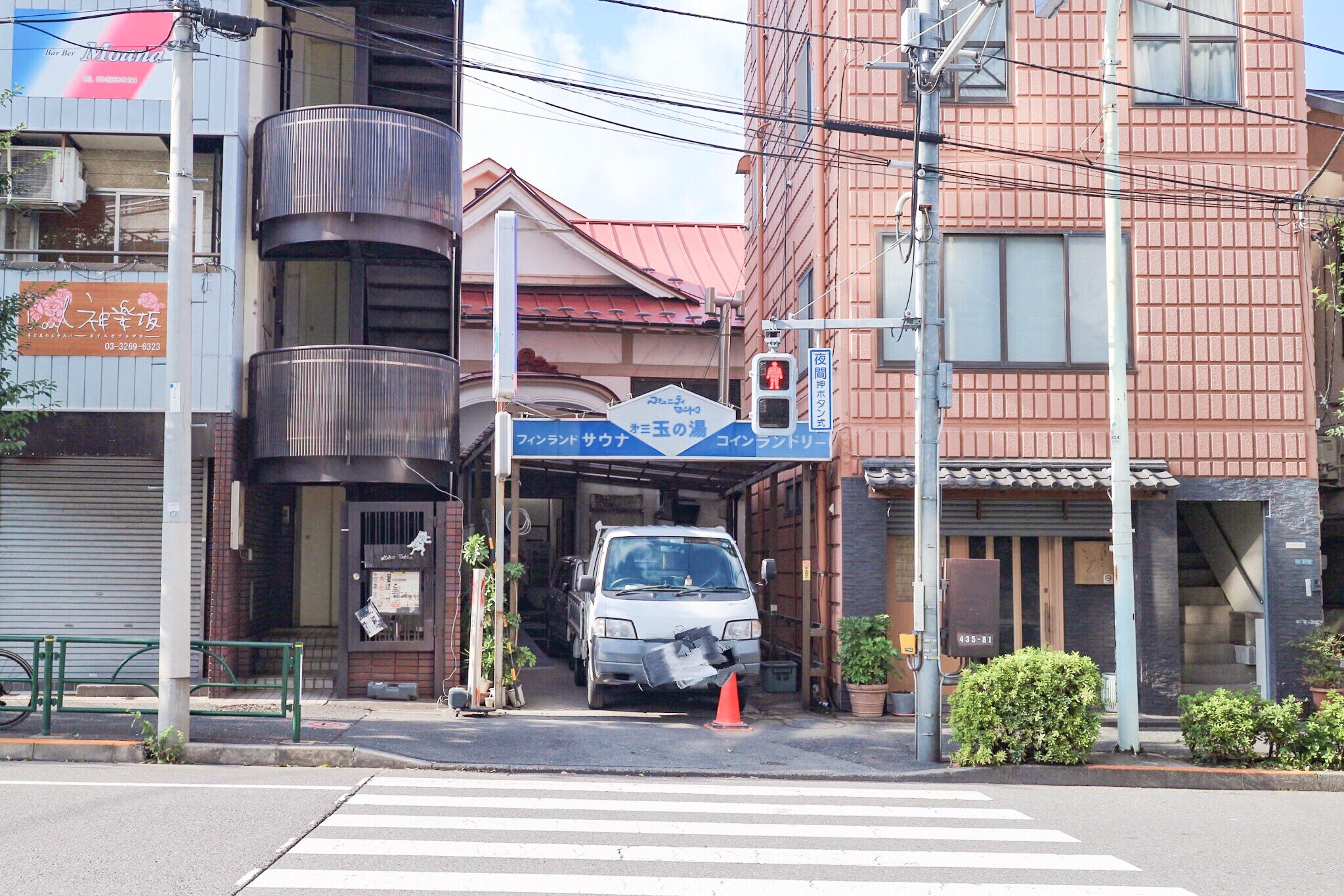 歩くこと10分弱。ついに見えてきた「第三玉の湯」の看板!待ち合わせていた夫と合流して入り口へ向かう。