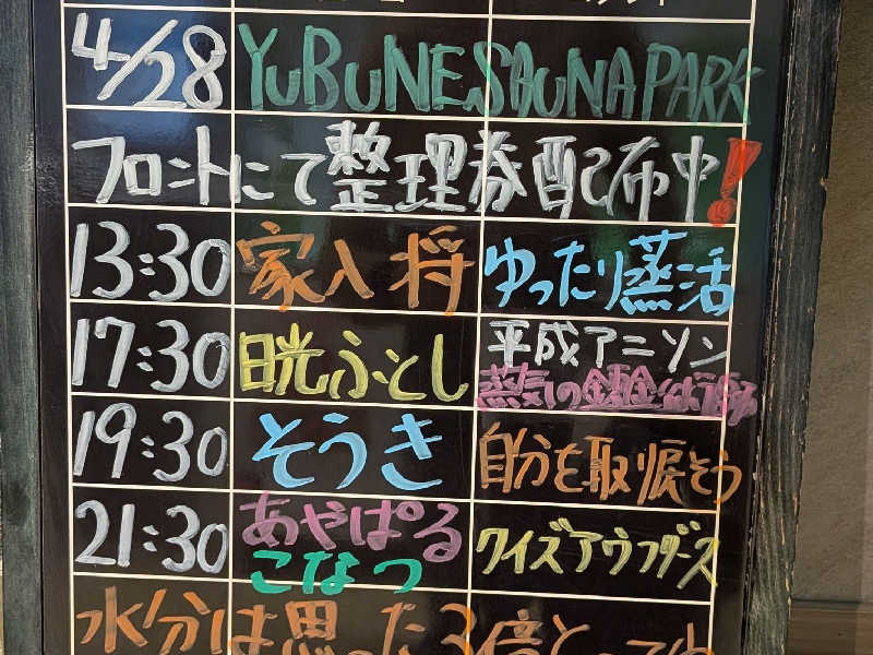 悪くないんだけど、狭くて混んでる(祝日だったからよねはい、、)のとマナー悪い人が気になり(場所取り、ととのい椅子の場所勝手に移動して水風呂の縁に足かけて通せんぼ)、他人の体に触れちゃうこともたくさんあって落ち着かないので、サクッと3セットし80分で退店、、