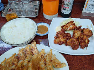 餃子は味噌だれラー油で、今日は唐揚げはしばらく置いてから食べたので、上顎火傷しませんでした。
