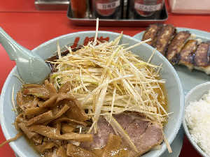 白髪ネギとメンマ増しトッピング。餃子はもちろん酢コショウなんだぜ🥟