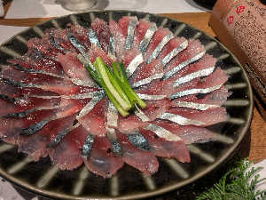 さばめっちゃキレイ😆薄切りの玉ねぎとの相性バッチリで美味しかった!鳥取の日本酒も豊富🍶