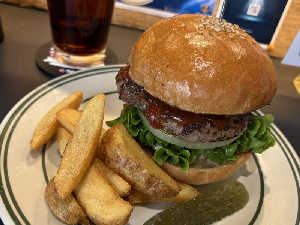 お洒落な雰囲気のハンバーガー屋さん🍔スイートチリは少し辛め! サイドメニューはコールスローがおすすめ