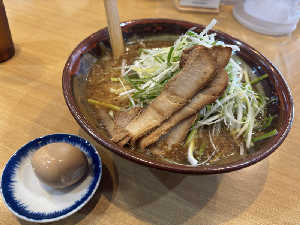 魚介の効いたスープと中太ちぢれ麺+煮卵1個