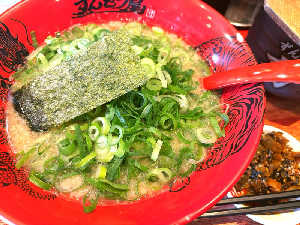 ねぎザクザクでボリューミー!高菜とおろしにんにくで味変、替え玉も追加して大満足😋