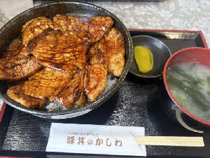 過去一の豚丼のお味。肉厚で柔らかく、脂身は甘く、炭火で香ばしい。豚丼たべるならかしわさんで決まり😍