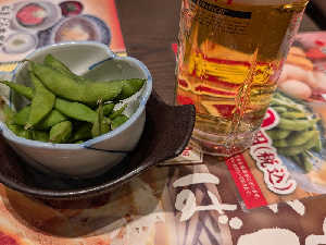 生ビールと枝豆とおでん2種で550円!激安ぅ!