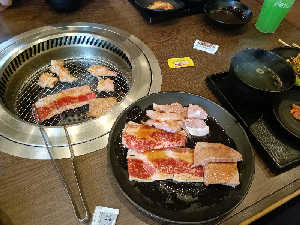 ロース80㌘ カルビ80㌘ 豚バラ80㌘ 鶏モモ80㌘ キムチ、サラダ、スープ、ご飯おかわり自由