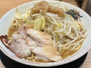 にんにく少なめ、野菜マシ、アブラマシマシ、カラメ