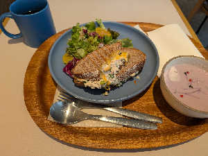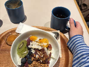サウナ前にしっかりモーニング🥣🧁