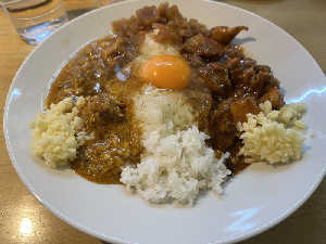 量が選べるがかなりのボリューム。家庭のカレー味+にんにくパワー。美味い。