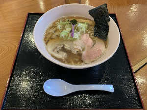 煮干しの効いたスープは朝にピッタリ。麺も美味しい。麺量は220g。朝メニューは安くて少なめを希望。