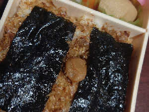 何でもない海苔弁。なのにうまい。駅弁としては新鮮。