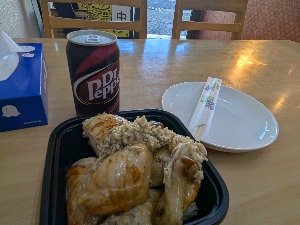 🧄使いまくりなのに食っても臭わない、でも味はしっかり。ドクターペッパーは外の自販機で購入。