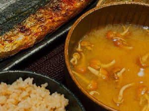 身がふんわり肉厚。ご飯は玄米、お味噌汁はなめこに変更にしました。