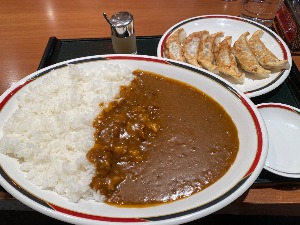 ジャンボメニュー注文で、ぎょうざが付くので、ジャンボカレーを注文して、ジャンボぎょうざカレーに!