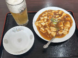 麻婆豆腐と生ビール
