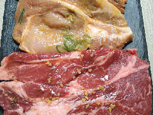 マルチスモークレスグリルの実力定期点検は、味付けしたデカ肉の牛・豚ロースで煙チェック✔合格🈴
