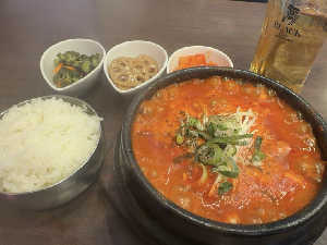 肉の量がすごい! キムチとご飯とナムルと蓮根きんぴら🍚付いててお得