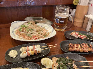 1本頼んだつもりが2本セットで倍来ました😇深夜の焼き鳥パーティー笑🐔