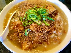 節が効いたあっさりスープにトロトロで甘辛に煮込まれた豚バラ軟骨のエキスが融合しめちゃくちゃ美味い😍