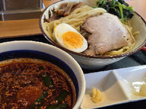 豚骨+魚介スープのオリジナルつけ麺 旨し、ニンニク足したら抜群。 肉が濃すぎかな。