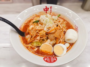 関東来たからには蒙古タンメンはタベタイ。背脂、ほうれん草、刻みタマネギをトッピング。辛旨😋