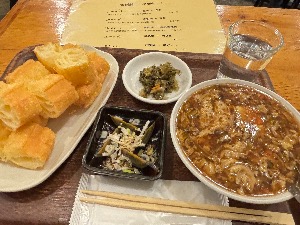 食べ方わからずに揚げパンと豆乳を別々に食べてしまった。500円で安く満足度は高い。