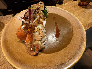 きのこの入ったルーと牡蠣のガーリックソテーが美味い