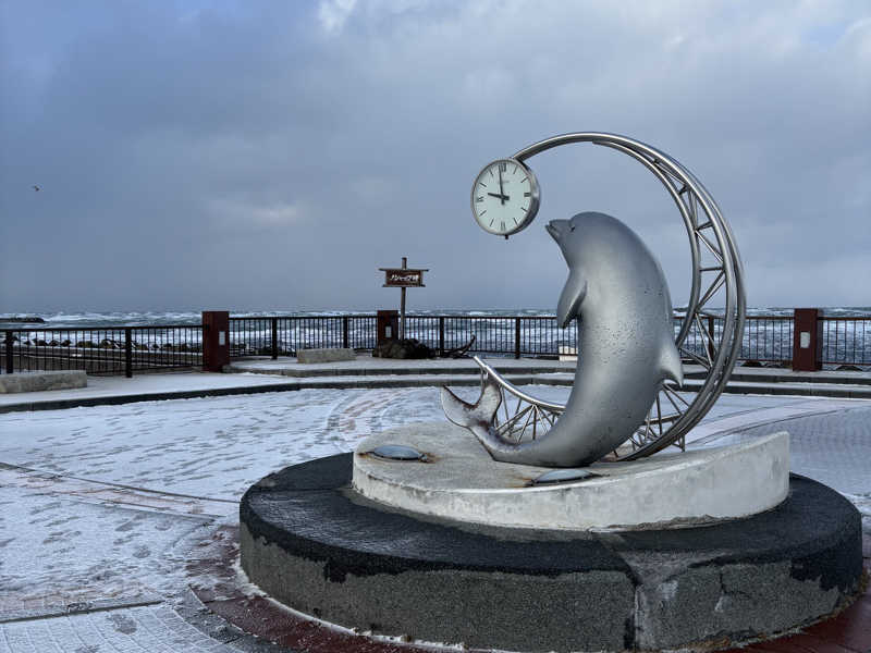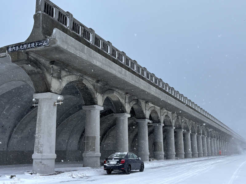 稚内の冬は寒いのを痛感し、露天風呂に浸かると、外壁から建物がドーム型構造だって分かるね
