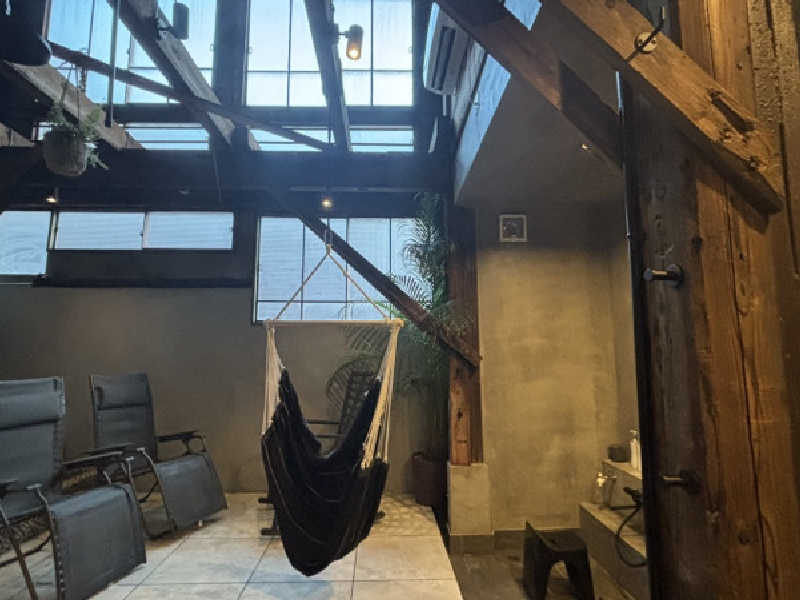 ハンモックに高い天井見ながら