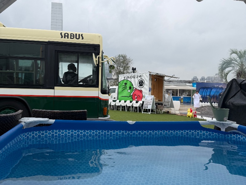 2年前に赤坂で1号車に乗りましたが、その頃よりかなり進化。スタッフの誘導で降車ボタン付近に座ってる方がボタンを押す→オートロウリュ発動は変わらず。途中、マグ万平さんが覗いて、乗客の皆様にご挨拶しましたが、第一声が「こっち(運転席側)から見たら絵面がエグいですねw」終盤にロウリュすると告知して一旦下車。その後、予告通りラスト3分でロウリュ。熱くて終点を前に降りましたが、マグさんにエスコートしていただきました。ジェントルで推せる。水風呂でもマグさんより、私を含めた数人の頭に水をかけていただきました。