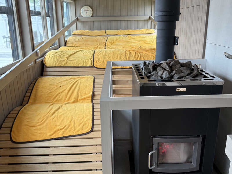 自由入場になってた。波形の座席は悪くないけど座りずらく温度も低めの75度。ロウリュボタンは押してもなにも起きないと思ってたら、長押しで霧状に出る仕様で出てることに気づかない微妙な感じ。