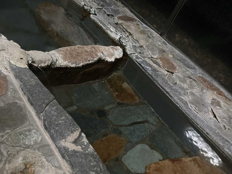 内湯は、源泉かけ流しの大浴槽42℃と加水ありのぬる湯39℃。