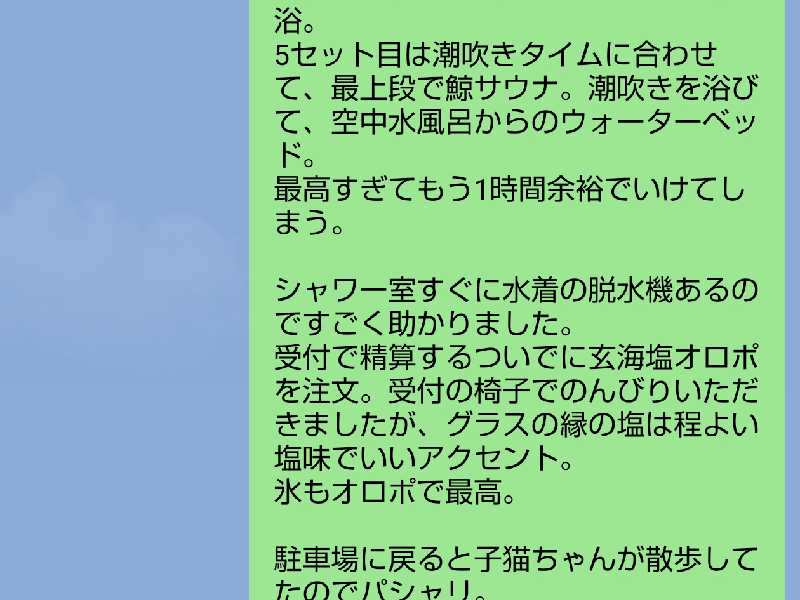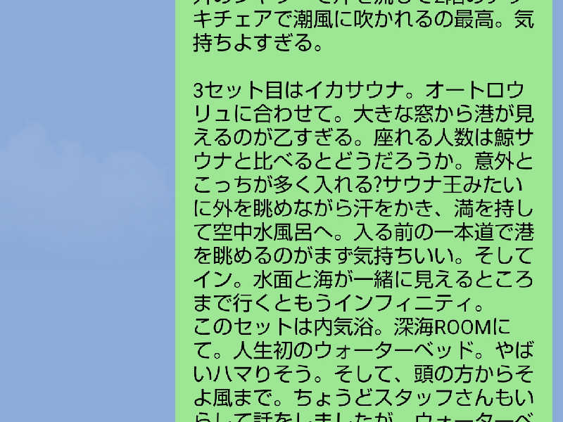 「海に浮かぶとはこういうことか…」と、まだ見ぬサウナ王・太田さんに感謝