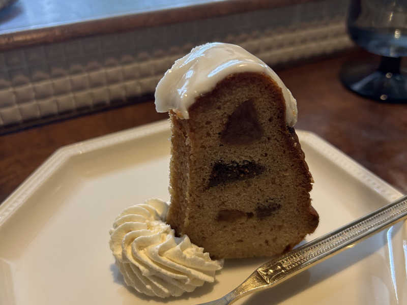 私はミートソースパスタと赤ワイン🍷デザートはイチジクのクグロフ