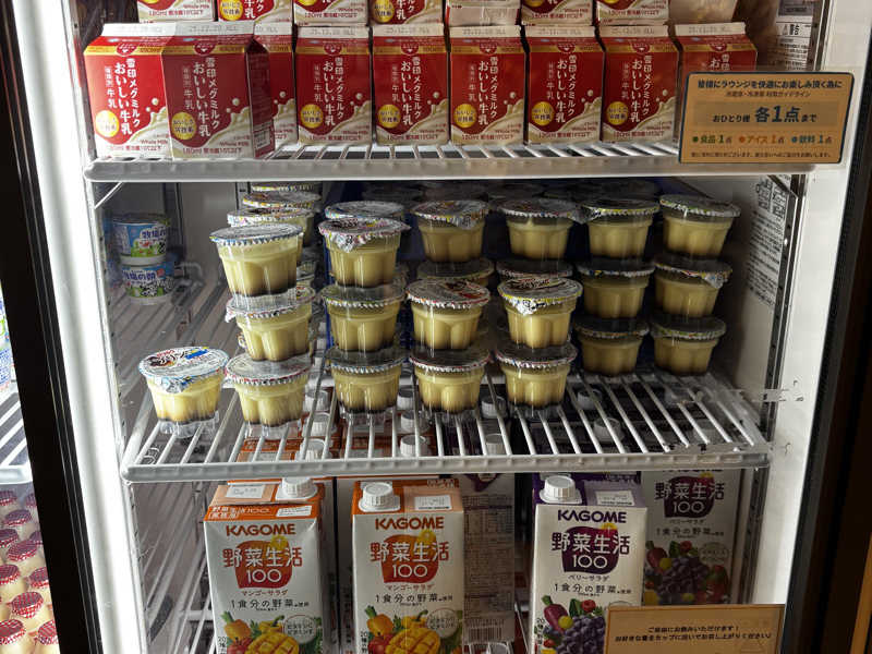 喉が渇いたので飲食スペースへ🍽️ここでは様々なドリンクや食べ物を自由に取って食べる事ができる😋有料の生ビールは12月末まで370円🍺🉐😋キンキンに冷えていてたまらない❗️😆🍺
