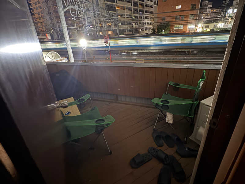 ベランダの外気浴スペースも、すぐ横が線路で電車が通っていたり人の話し声が聞こえたり。そんな騒音の中ととのう時間も他にはない感じで心地良かった🌿✨