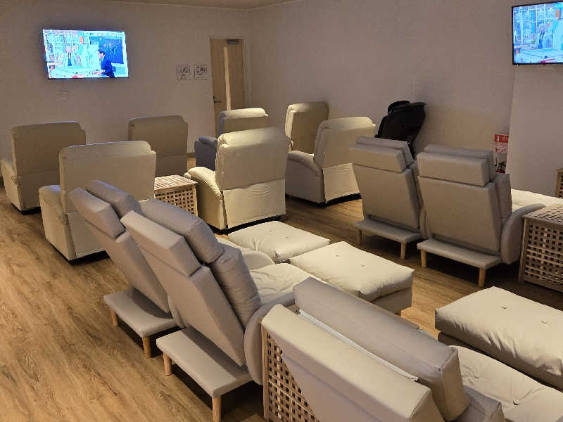 食事処の奥には、うたた寝処とリラクゼーションルームがあり、奥の方には女性専用の別部屋でのリラクゼーションルームがあります。