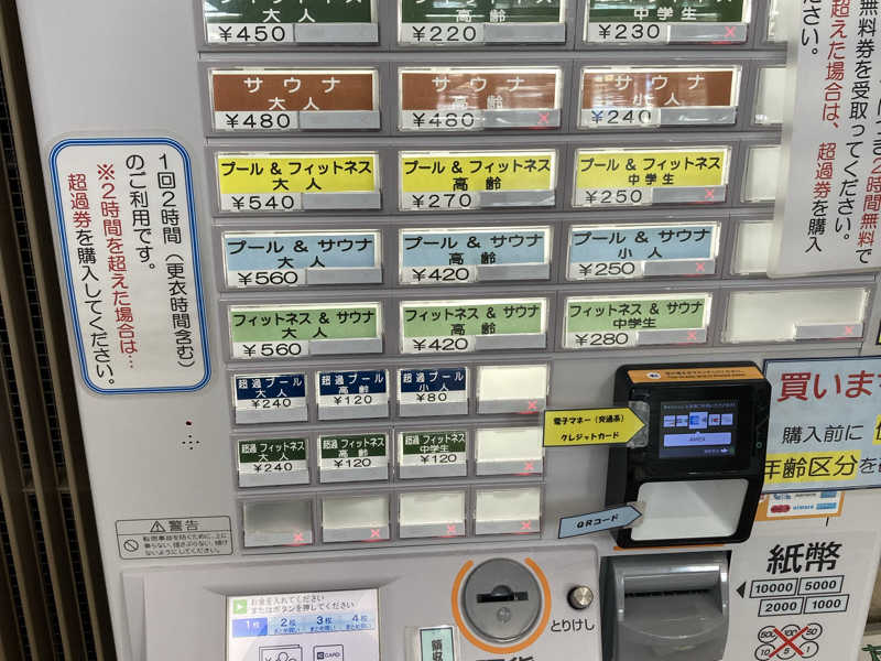 さっそく券売機でサウナ利用の券を買い受付に