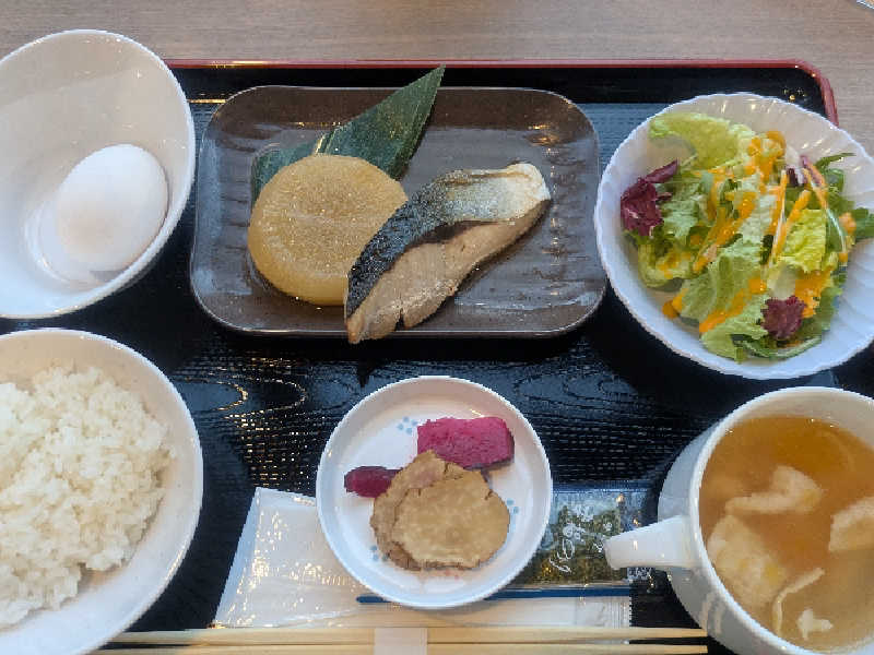 メインは固定で和洋選択。主食やスープ等はセルフ。ぶり大根だけど、大根が味染みてるのに硬い。謎技術。