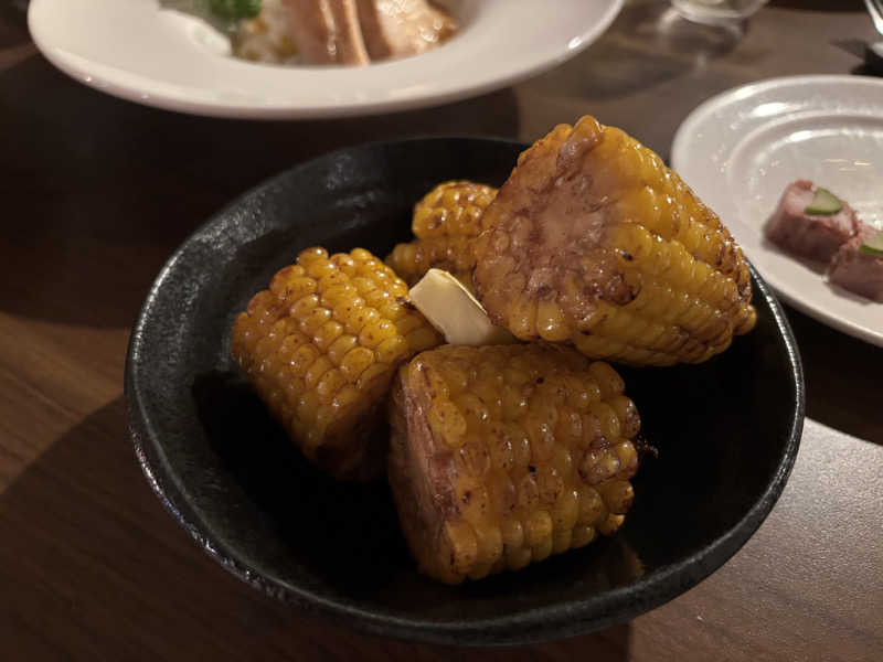 料理長が特別メニューで醤油バターで焼いたコーンを出してくれました〜 シンプルだけどこれが美味い!