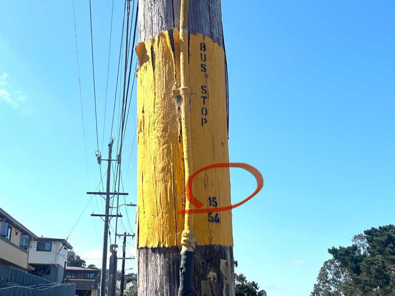 ◆現地のバス停は、木に15と書いてあります