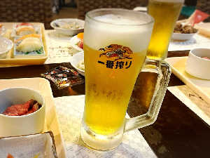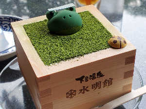 ロビーラウンジ エビアンにて『ただいま入浴中』升は帰りに新品の物が記念に貰えます