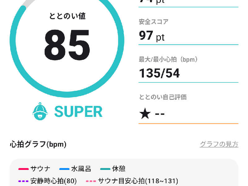 なかなか広め。90℃。ストーンサウナ。最上段でテレビ無し。TUBEの「夏だね」が流れてた。もうじき冬だけどねと思ったけど😅9分。水風呂1分。外気浴は露天のヘットが3個あり、開放的な露天風呂で夕暮れの空を眺めながらの外気浴。寒いので6分だけど、あまみ出てそこそこよかった。