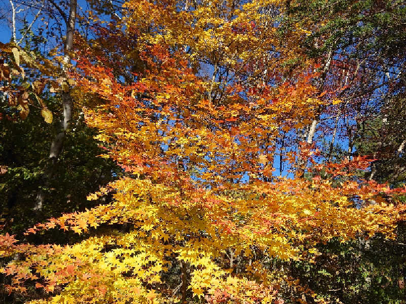 明治温泉へ行こうと、女神湖で宿に電話したところお休みとのこと😭白樺湖を軽く散策した。紅葉が見ごろ少し過ぎた感じかな。ここで尾白の湯に行くことに決定!