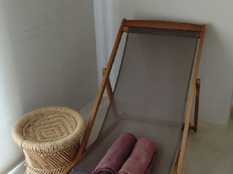 80分のタイマーがスタートしたら照明を落としてサーキュレーターと休憩チェアにマットをセッティング!