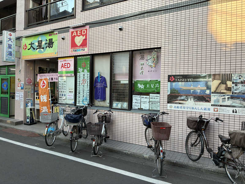 今年で70周年の大星湯は、ビル型で比較的新しい印象の銭湯。