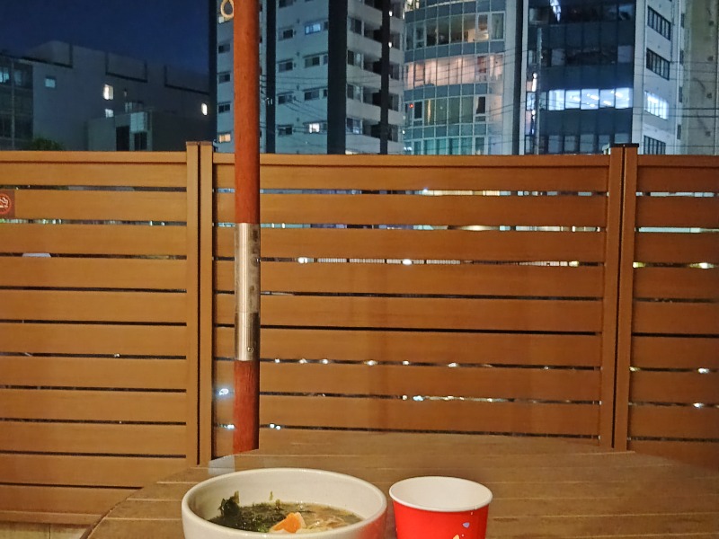 で、ココの個人的おすすめはテラス席!夜風を浴びながら夜鳴きそばを啜れるドーミーイン、なかなか無い気がします。