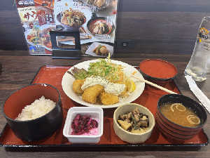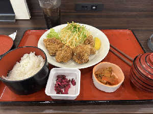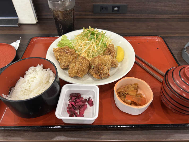 唐揚げとカレーうどんのナイスコンボ。白飯もっとほしい🤣