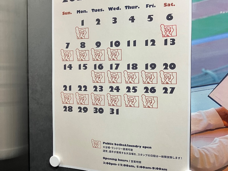 受付でタオルと水を1本貰い2階の浴室に向かうと途中もケイリンらしいデザインがありました🚴